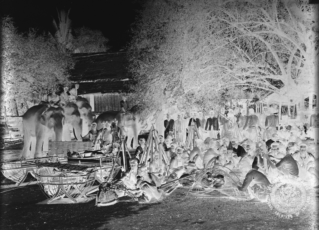 Hunting caravan at Wat Khaobuatnak (currently Wat Chomkhirinakphrot), Nakhon Sawan, during King Chulalongkorn’s incognito travel in 1906.