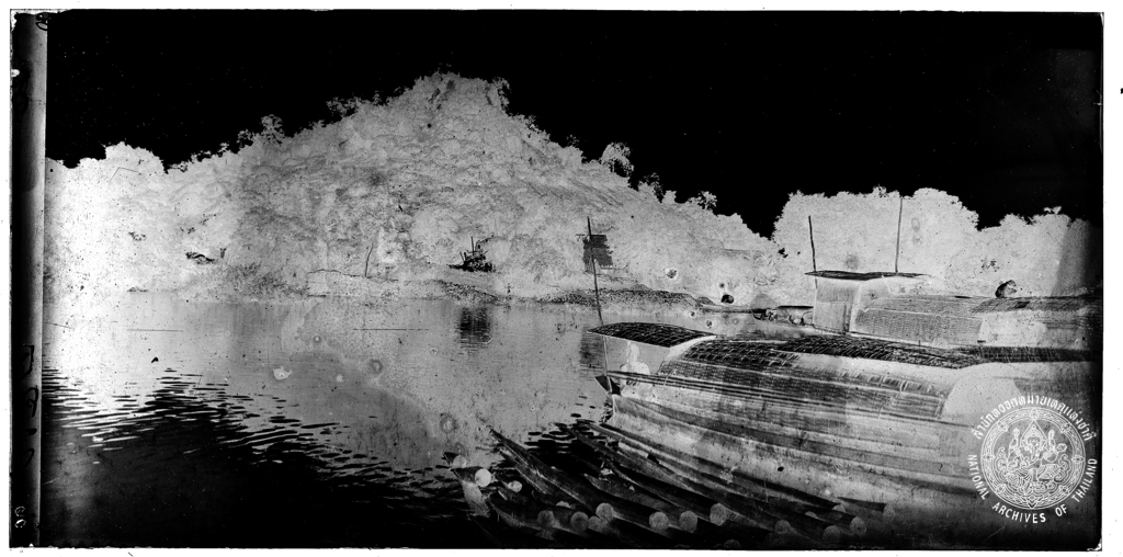 Waiting people, rowing boats to receive King Chulalongkorn at Wat Lai, Lopburi in 1906.