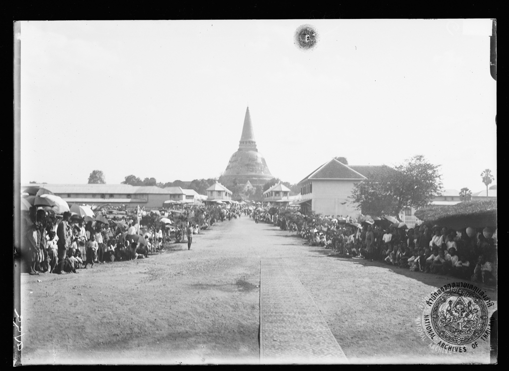 ราษฎรเมืองนครชัยศรี เฝ้ารับเสด็จพระบาทสมเด็จพระมงกุฎเกล้าเจ้าอยู่หัว ครั้งเสด็จพระราชดำเนินไปทรงสักการะพระปฐมเจดีย์