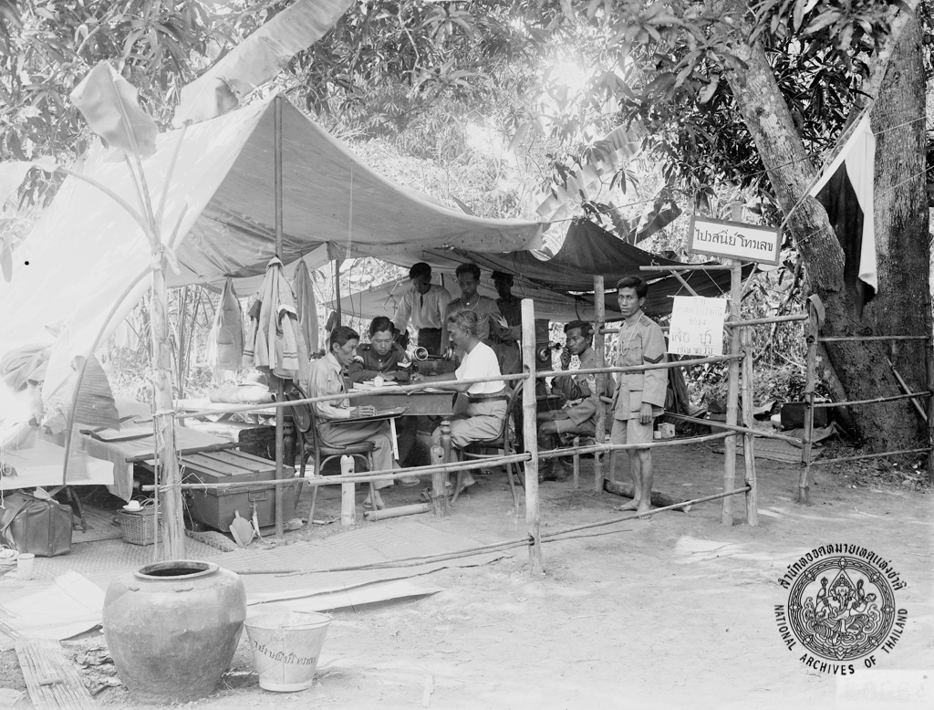 การขายตราไปรษณียากรบำรุงเสือป่า ณ ที่ทำการไปรษณีย์โทรเลขในที่ทำการซ้อมรบเสือป่า ณ ค่ายหลวงบ้านไร่ เมืองราชบุรี